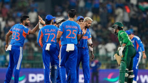भारत के 176 रन के लक्ष्य का पीछा करते हुए पाकिस्तान की टीम हार्दिक पंड्या (16 रन पर दो विकेट), वरुण चक्रवर्ती (17 रन पर दो विकेट), जसप्रीत बुमराह (17 रन पर दो विकेट) और अक्षर पटेल (29 रन पर दो विकेट) की धारदार गेंदबाजी के सामने 18 ओवर में 114 रन पर सिमट गई।पाकिस्तान को पारी की चौथी गेंद पर साहिबजादा फरहान (0) के रूप में बड़ा झटका लगा। उस समय तक पाकिस्तान का खाता भी नहीं खुल सका था। इसके बाद टीम ने 13 के स्कोर तक अपने 3 विकेट खो दिए।