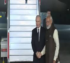 ।रूस के राष्ट्रपति व्लादिमीर पुतिन गुरुवार की शाम अपने दो दिन के दौरे पर नई दिल्ली पहुंच गए। प्रधानमंत्री नरेंद्र मोदी ने खुद आईजीआई एयरपोर्ट पहुंचकर पुतिन का स्वागत किया। पीएम मोदी ने स्वागत करते हुए पुतिन को गले लगाया। इस दौरान रूसी राष्ट्रपति ने भारत के उच्च अधिकारियों से मुलाकात की। प्रधानमंत्री नरेंद्र मोदी और राष्ट्रपति व्लादिमीर पुतिन ने दिल्ली के पालम टेक्निकल एयरपोर्ट से रवाना होते समय एक ही कार में यात्रा की।